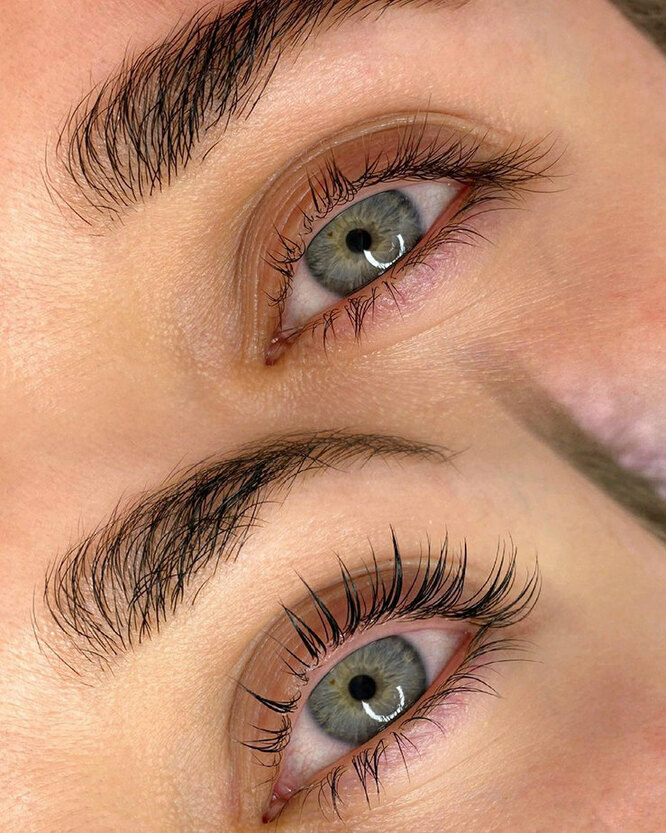 При ламинировании взгляд приобретает новое выражение и создается эффект наращивания ресниц.
